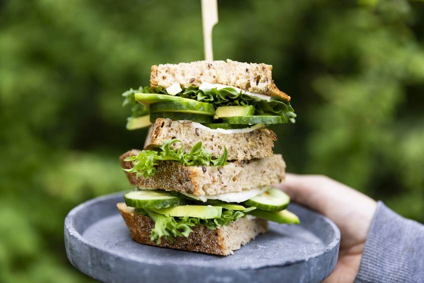 Sommerens favoritt-sandwich er enkel, grønn - og smaker nydelig med Bakerens Utvalgte Kornbrød. Tips! Sett gjerne en grillpinne i sandwichen, da holder skivene seg sammen.