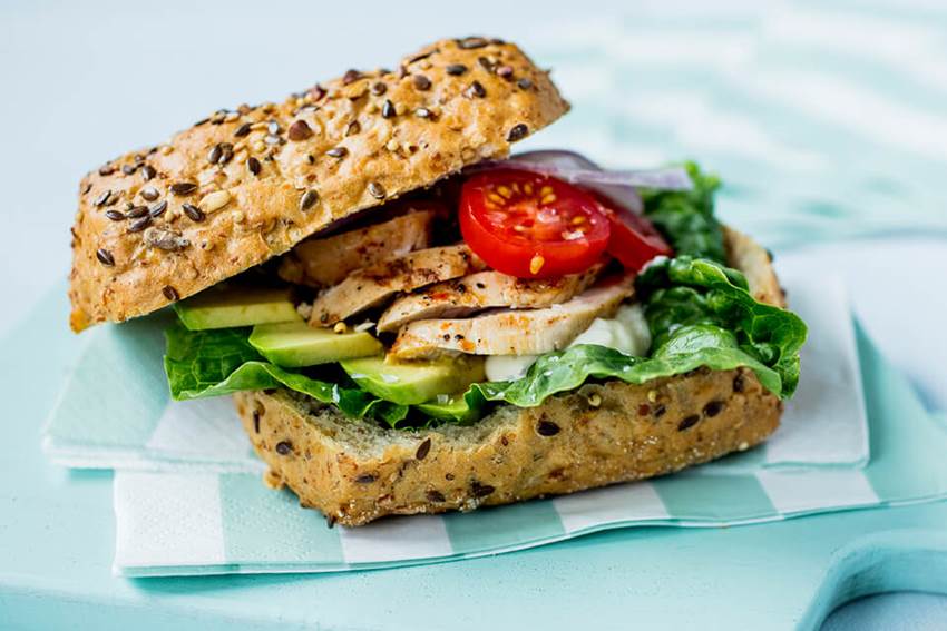 Rundstykke med kylling, avokado og salat