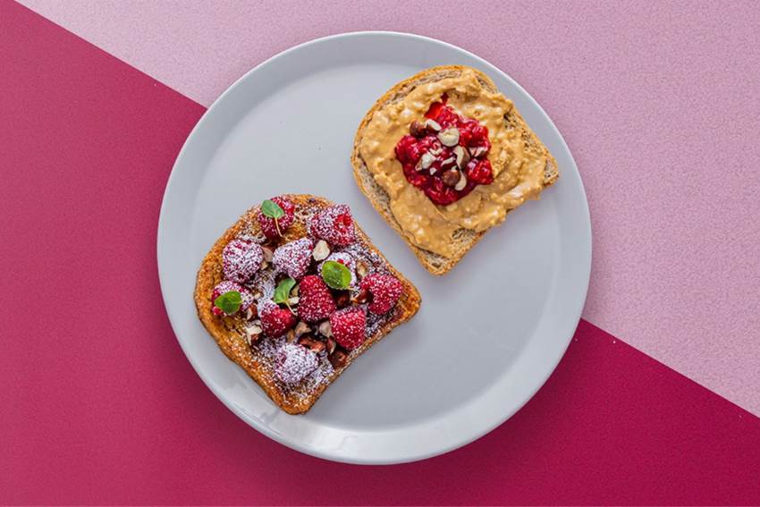 Ferskt brød er utrolig godt, men har du tenkt på at gårsdagens brød kan bli like godt? Skåret Våre groveste Matpakkebrød med peanøttsmør og friske bringebær er en super snack når du har lyst på noe godt,- gårsdagens brød blir til den gode dessertskiven french toast med bringebær.