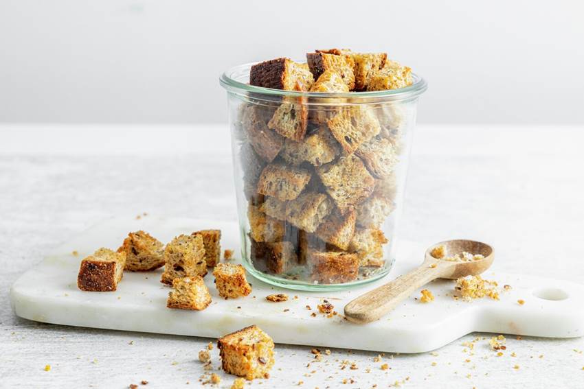 Krutonger kan du lage av mange typer brød,- passer perfekt i supper, salater eller som crispi tilbehør til middagsmaten. Ikke kast brødrestene, men bruk dem til å lage krutonger!