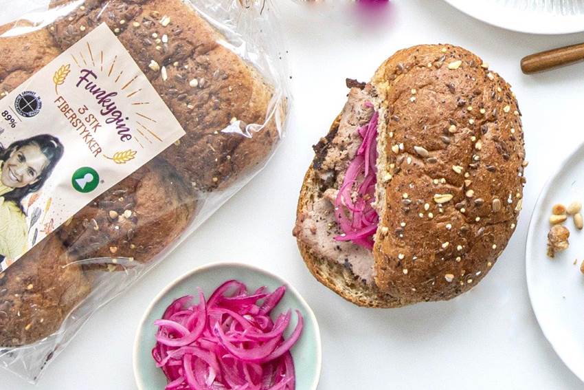 - Smør godt med leverpostei på rundstykket og topp med hurtigsyltet rødløk.