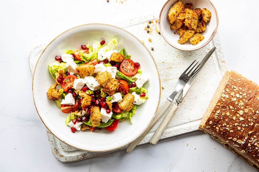 Har du brød til overs? Salat med krutonger er supert i matpakken og en enkel sak å smekke sammen.