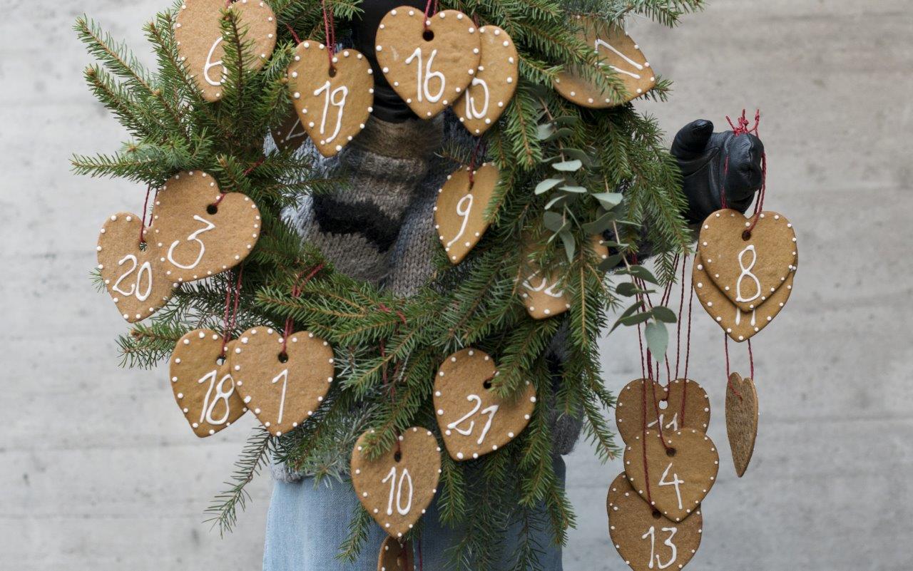 Julekalender med pepperkake-hjerter