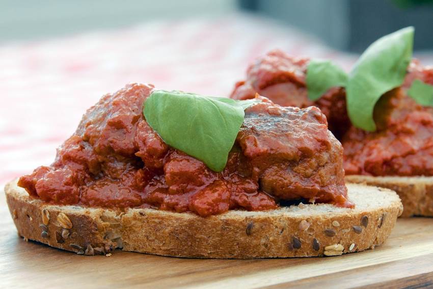 En kjent, spansk pintxos-rett med arabisk opprinnelse: Kjøttboller i smaksrik tomatsaus. En perfekt match med Vårt beste grovbrød!