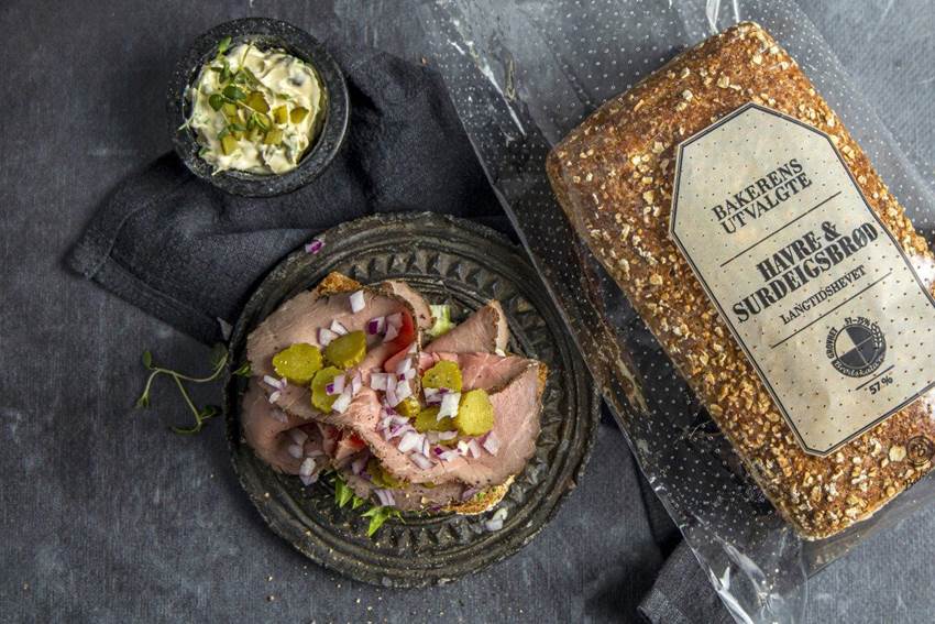 Bakerens Utvalgte Havre- & Surdeigsbrød er et brød som har meget saftig krumme, store porer, smakfull skorpe og en god rund smak. Prøv skiver av dette brødet med roastbiff og remulade.