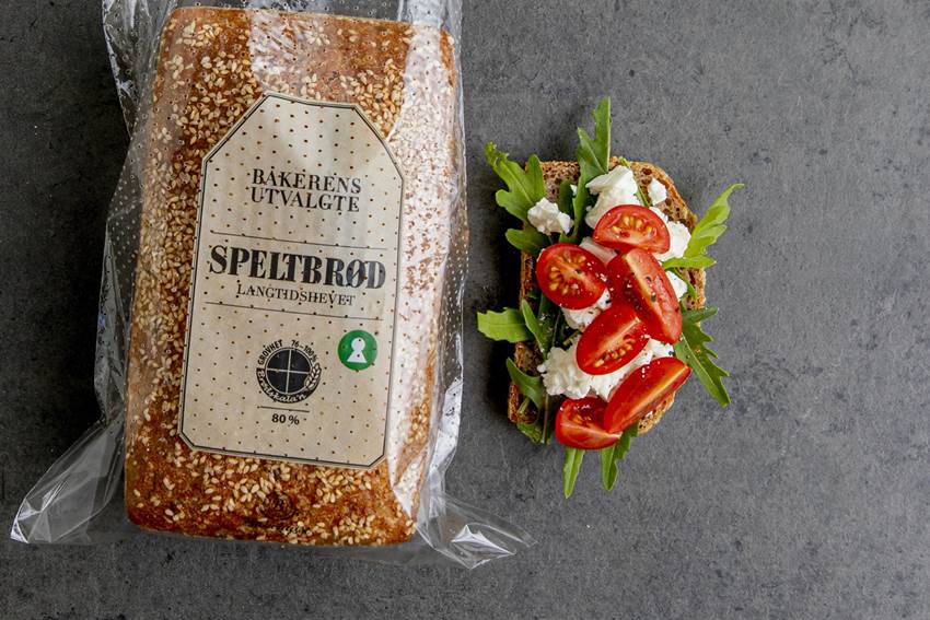 Bakerens Utvalgte Speltbrød har meget saftig krumme, store porer, sprø skorpe og en god rund smak. Mye vann som er jobbet inn i deigen, litt og litt, gjør brødet svært saftig, - og gjør seg godt sammen med friske tomater og fetaost.