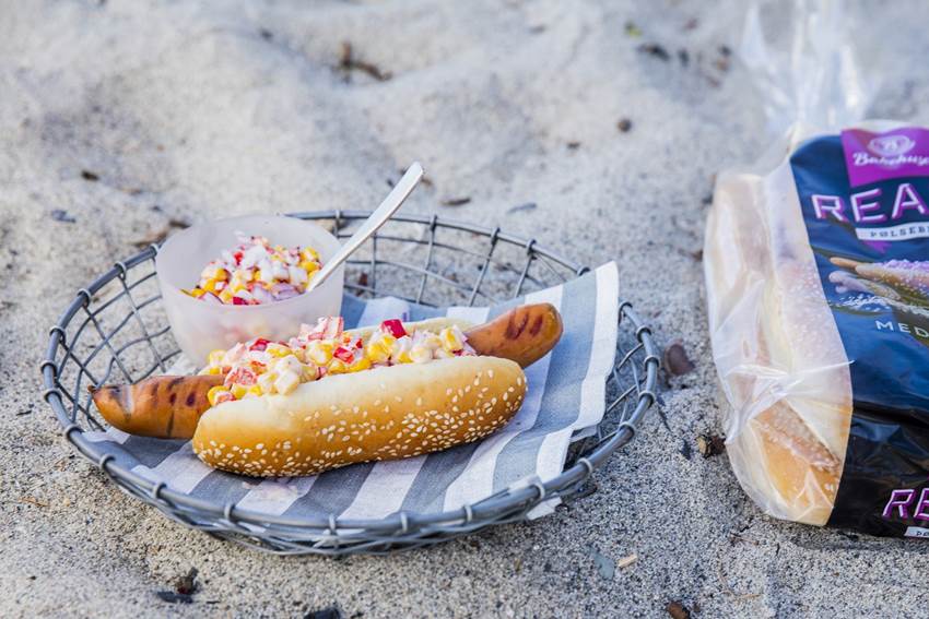 En frisk sommersalat som topping på pølsa hever måltidet.