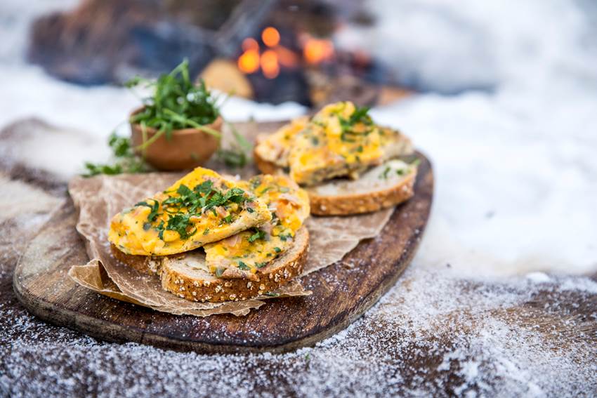4. Legg deretter omeletten på en skive grovt brød (vi har brukt havrebrød).